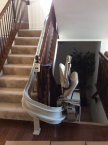 Pricing of curved and custom units is based upon the angles (90 degrees, 180 degrees, or radius) of your staircase, and the number of turns. MediEquip is pleased to offer curved stair lifts from both Bruno and Handicare.