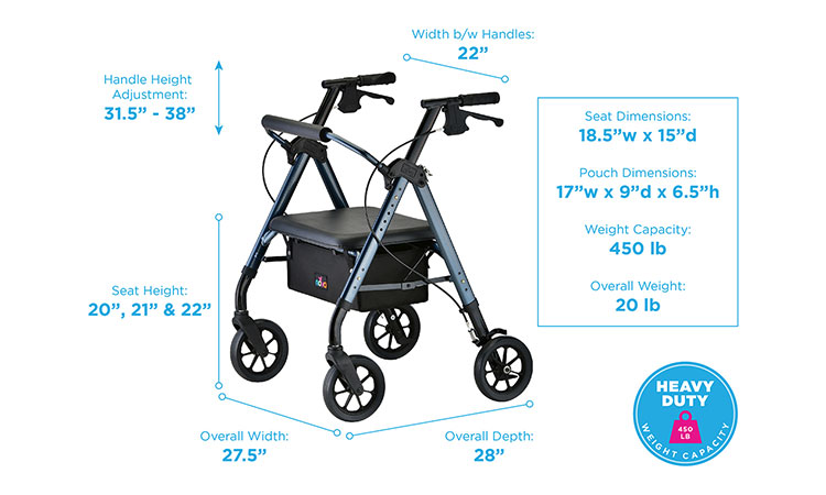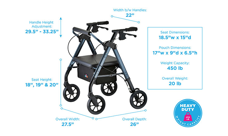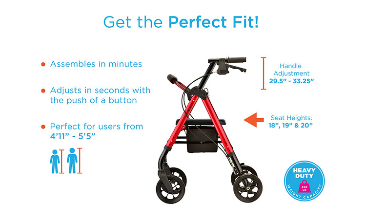 Meet the Nova Star HD. It has all of the features of the Star 8, larger wheels, adjustable height seat and armrests. All of this with a wider seat and a sturdy 450 lbs weight capacity. Available in standard and petite sizes to guarantee a perfect fit.